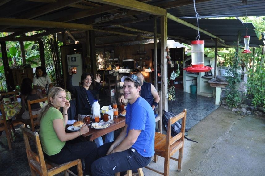 Ansonsten haben wir in einem huebschen Holzhaeuschen gewohnt wo es exzellentes Fruehstueck in einer Open Air-Kueche direkt am Wildbach gab. Und das ganze fuer 7 Dollar - so laesst sichs leben. Am naechsten Tag wanderten wir einige Wasserfaelle ab und beschauten uns eine Orchideenausstellung, die aber nicht so prickelnd ausfiel, weil zu derzeit weeeeenige Blueten vorzufinden waren. Die Wanderung dafuer war echt nett. Abends gabs Fisch (Forelle) mit Reis, Salat und Kochbanane. Und wir goennten uns auch mal ein Bierchen.