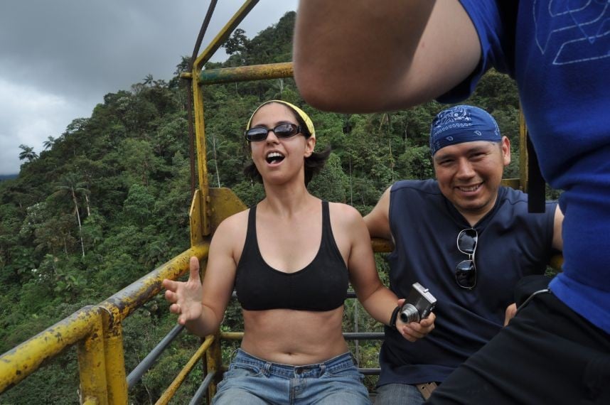 Anne, Simon und ich haben uns ueberlegt, dass ein Wochenende (die Spanischkurs-freie Zeit), sich doch wunderbar zum wegfahren eignet. Und weil Mindo uns mit seinen Nebelwaeldern mehrfach empfohlen wurde, haben wir uns einfach ma in den Bus gesetzt und los. Leider war Naiv-Yves mal wieder zu gutglaeubig in den Anstand des Menschen und hat seine gruene Lieblingsjacke, die ihn schon auf sooooo vielen Reisen begleitet hat ("schnief")- ueber ihm in die Ablage im Bus gelegt und dachte, das wird schon gutgehen bzw. das wird er schon merken, wenn da wer drangeht - Pustekuchen: weg war se. Mist. Dazu kam noch, dass sich meine EC-Karte in meiner Tasche in eine Position begeben wollte, fuer die sie nicht gemacht ist - ebenfalls dumm gelaufen. Naja, und so ein wenig miesepetrig in Mindo angekommen, versuchten Simon und Anne mich zugleich mit einer Pizza aufzuheitern, was auch ziemlich gelang. Als sie dann mit den ebenfalls sich in Mindo aufhaltenden Virginia und Carlos, die wir aus unserer Spanischschule kennen, beratschlagten, was denn nun mit dem Tag anzufangen sei, sagte ich dummerweise, dass ich mit allem einverstanden sei, was sie sich ueberlegen... Das Resultat war, dass ich mich in einen Gurt gesteckt und an ein Drathseil gehaengt mit gefuehlten 100 kmh ueber dem Nebelwald wiederfand - Olei!! (danke Bjoern fuer dieses an dieser Stelle exzellent passende Wort).Doch das war noch nicht alles - dann wollten die auch noch, dass wir das ganze in Superman oder Schmetterlingspose tun - was sich als relativ freischwebende Kopf-nach-unten-Position entpuppte. Olei olei!