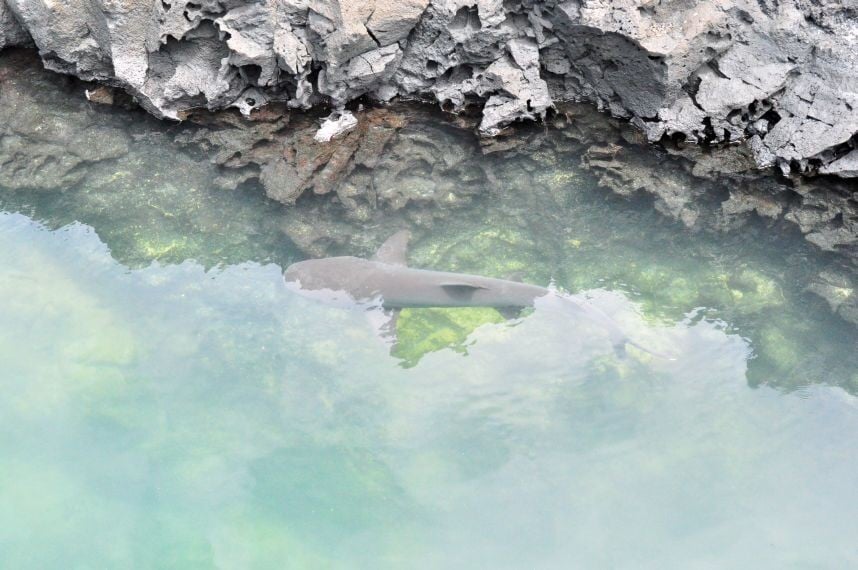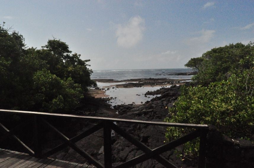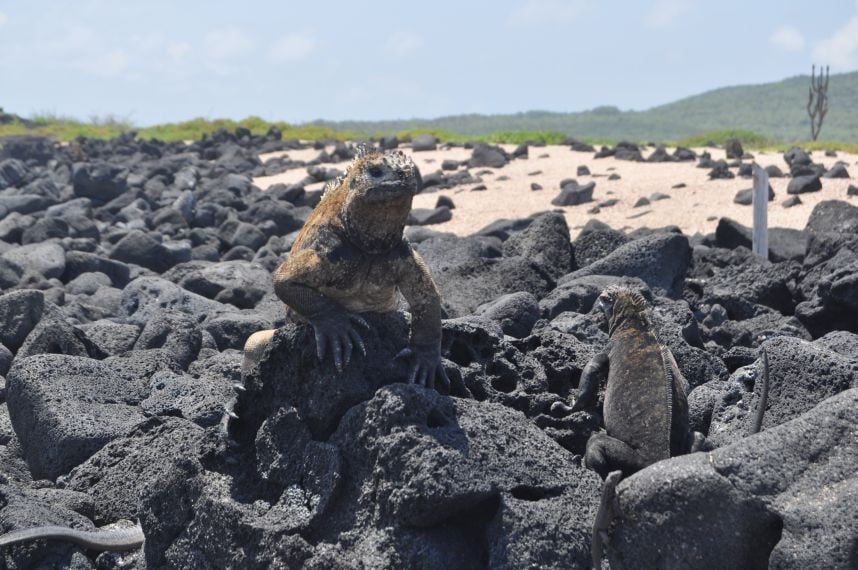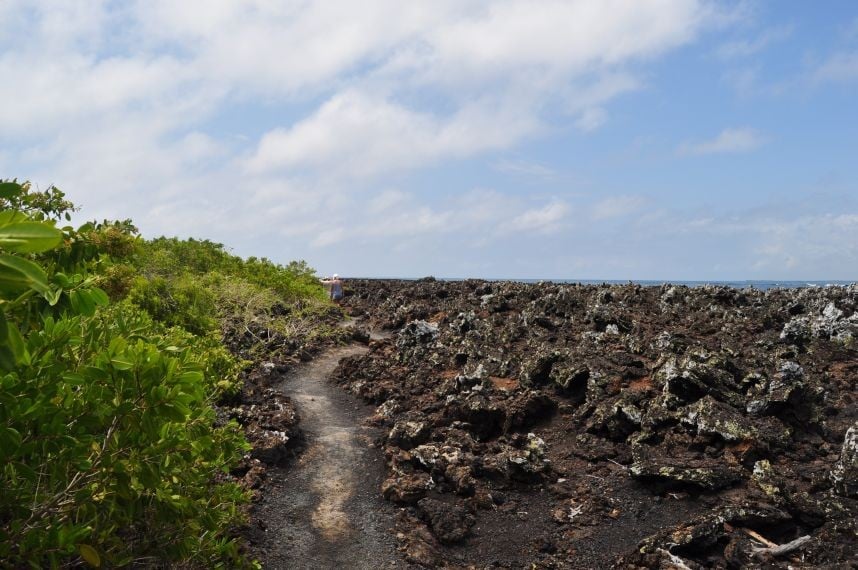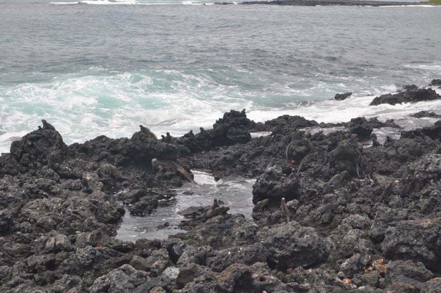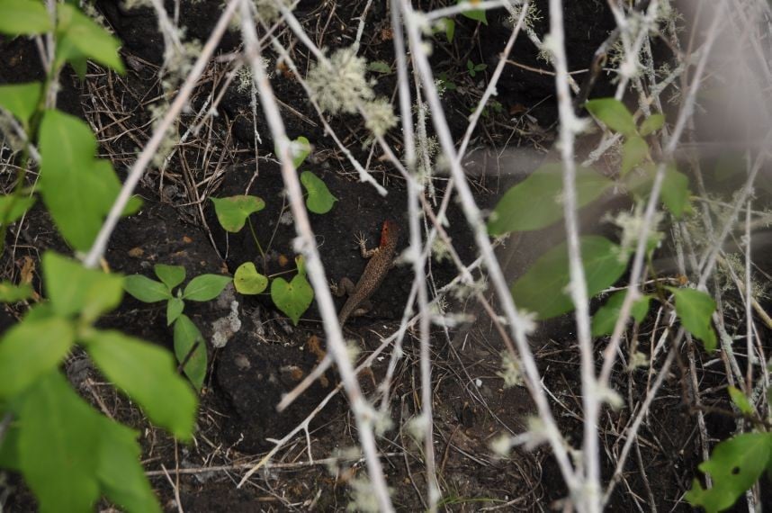 Die Lawasteine, die ueberall zu sehen sind, sehen aus wie aufgehender Hefeteig. (Ama - du weisst was ich meine - vermisse deine Zwetschgenknoedel!). Ueberall vom Weg ab sind kleine ausgebaute "Attraktionen" zu bestaunen. Unter anderem eine alter etwa vier Meter durchmessender Lavatunnel und einige Lagunen. um halb eins komme ich zur "Playa del Amor"- Strand der Liebe! Ernuechternd stelle ich fest, dass ich alleine da bin.... als ich mich schon enttaeuscht trollen will, stelle ich fest, dass der Name wohl eher von den sich paarenden Leguanen kommt die hier ueberall nach vollbrachter Jagd im Meer in der Sonne chillen und sich hier paaren wollen. Die ausgeruhteren, sonnengewaermteren zittern balzend mit ihren Koepfen. Hab dazu auch ein Video gemacht - mal schaun ob ich das hochgeladen bekomme... Wie gesagt, die Leguane wackeln sich wie besessen mit ihren Koepfchen zu, nur mein Gebalze bleibt unerhoert... ich hab eigentlich erwartet, dass hier von allen Seiten irgendwelche Sirenen oder andere Fabelgestalten auftauchen - so irreal scheint der Ort. Muss an die Flussszene in "O brother where art though" denken - "Don´t you week little baby" - die Szene wurde hier gut herpassen...