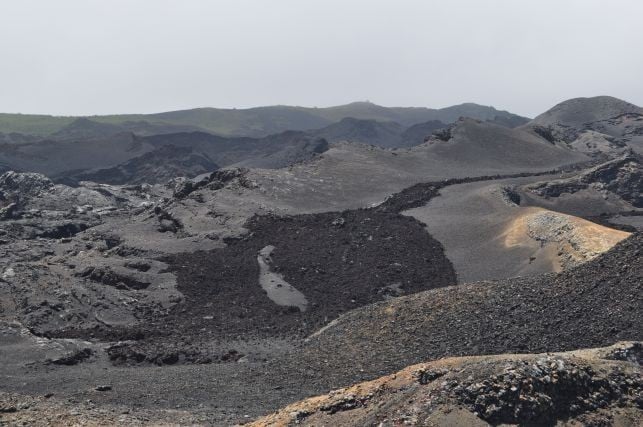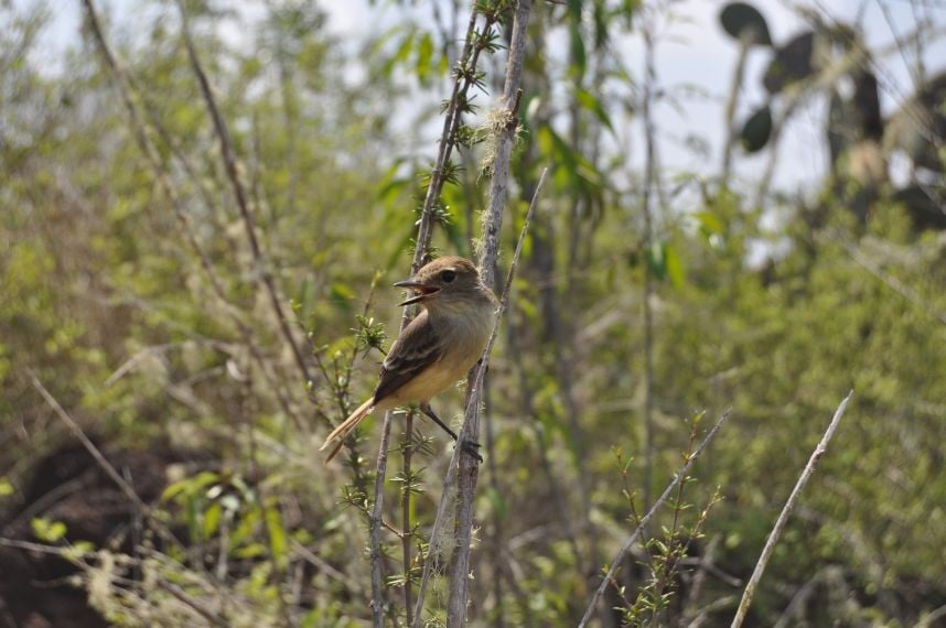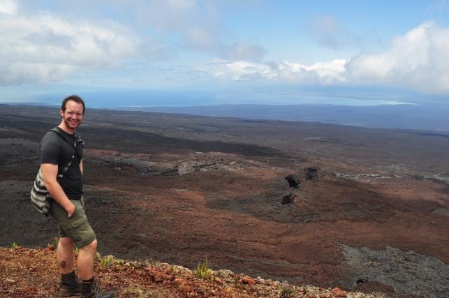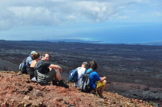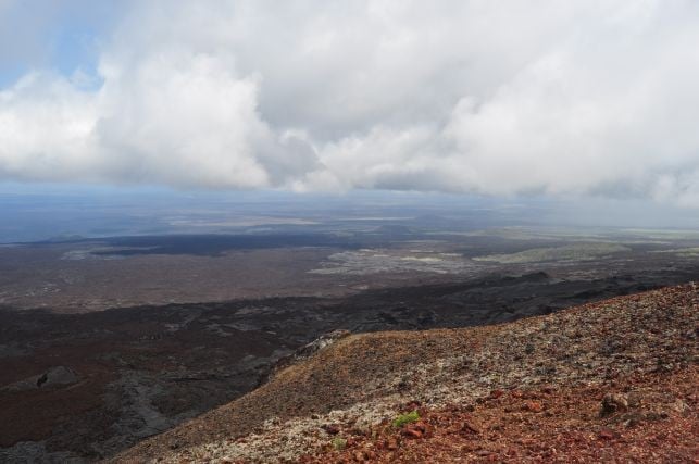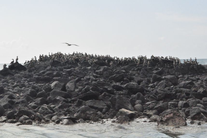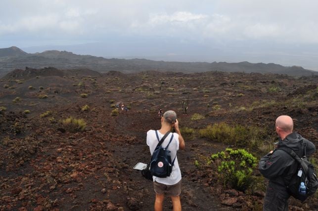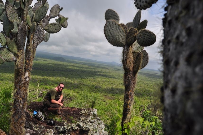 und ueber das schlapprige Marmeladenbrot, was ich mir aus der Plastiktuete zaubere. Ein Fink wird neugierig und will mir das Broetchen streitig machen, welches ich natuerlcih nie kampflos aufgeben wuerde. Er fliegt mir fast auf den Kopf, erlaubt mir aber auch einige Schnappschuesse. Ein Schild weiter unten sagt: "Nicht weiter, hier werden eingefuehrte Tiere gejagt". Ich will keine Ziege, kein Esel oder Hund sein auf dieser Insel. Ein Fuehrer hat uns erzaehlt, dass die spanischen Piraten, die auf der Insel halt gemacht haben, irgendwann festgestellt haben, dass Schildkroeten viel laenger ohne wasser koennen als Ziegen, was ne wunderbare Eigenschaft ist, auf so nem Piratenschiff. Der Fuehrer meinte, dass die Viecher es ohne Essen und Wasser bis zu einem Jahr ueberleben... (soll jeder selbst entscheiden wie viel er davon glaubt). Somit gabs auf dem Piratenschiff immer Fleisch, ohne dass man was fuettern oder kostbare Wasservoraete teilen musste...