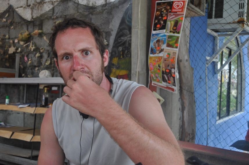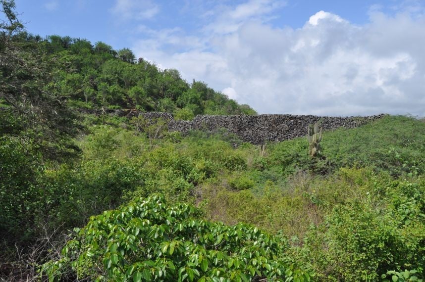 Guten Morgen Vietnam! Um 10:15 erreiche ich die "Mauer der Traenen" - eine ohne Moertel in die Hoehe gequaeltes Bauwerk, was Zeitzeuge einer fruehreren Gefaengniskolonie ist. Die Steine brechen zur Seite weg - das war ne Drecksarbeit. Ich kaempfe mich durch enges Gestruepp auf einem halb zugewachsenen Pfad zur Hoechsten Spitze eines Huegel. Es geht durch alles moegliche Gestruepp in kurzer Hose. Doch eine genauere Untersuchung meiner Beine ergibt das Urteil, dass es nicht einmal Zecken auf den Inseln zu geben scheint.... Oben erinnern ein Fundament und ein Metallgeruest an ein Gebaeude, was hier wohl einst gestanden hat. Hab grad einen absoluten Hormonschub - freu mich einfach: